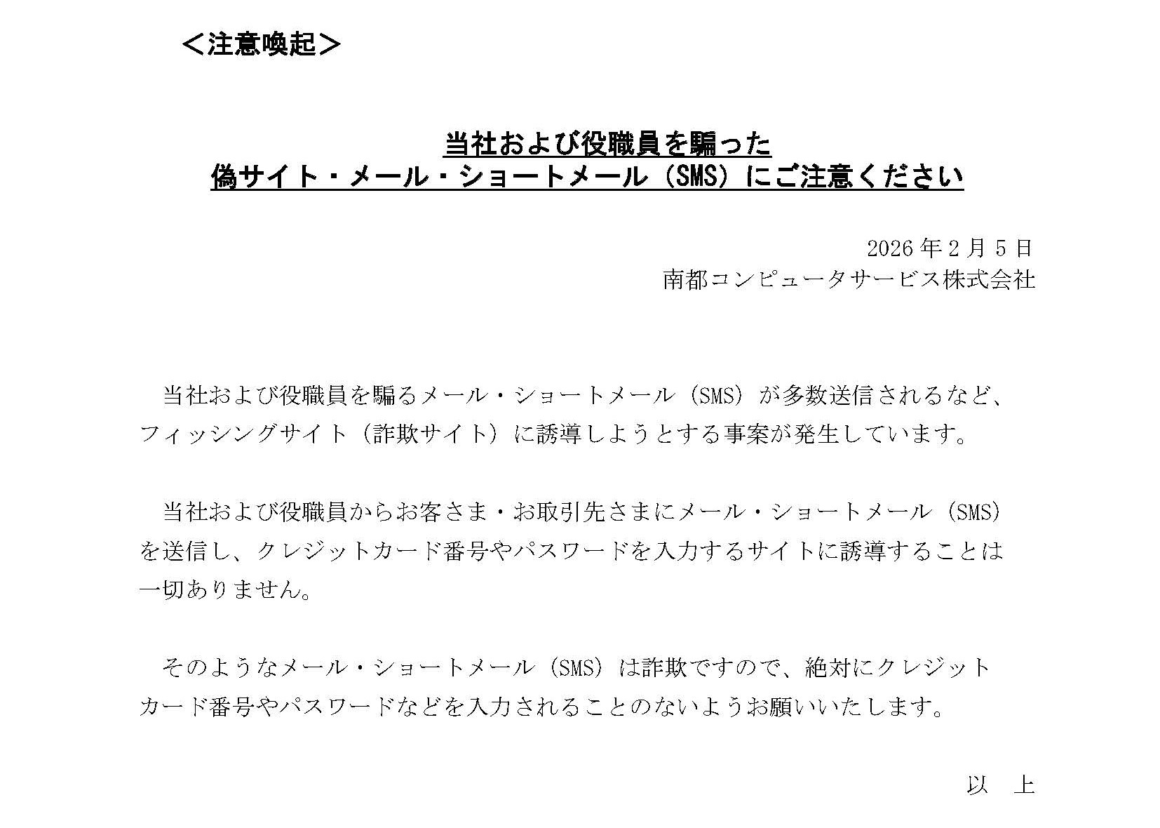 当社および役職員を騙った偽サイト・メール・ショートメール(SMS)にご注意ください